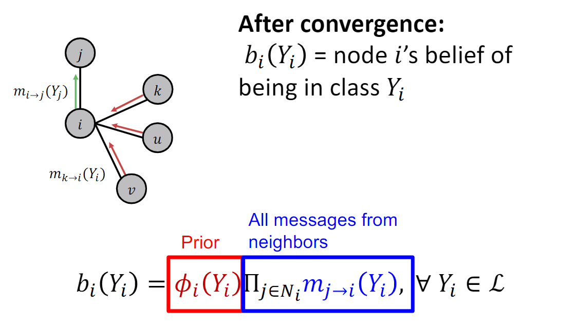 i的message。  下面给出Loopy BP Algorithm正式描述,(我没怎么看懂)。    下面是Loopy BP Algorithm的例子:    由于现实世界中的图通常长得比较想树形图,回路比较少,故可以使用前面的方法近似计算。