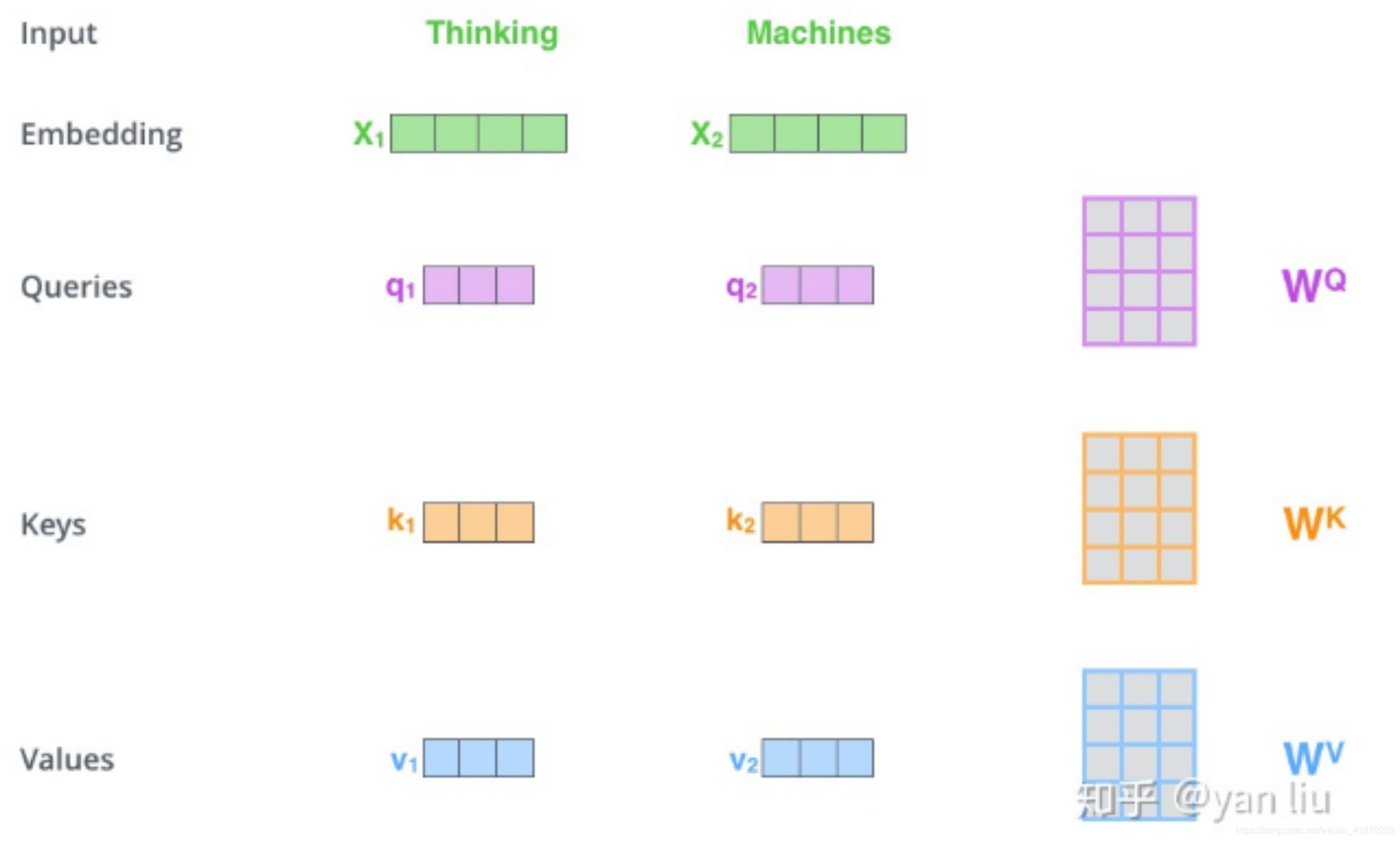 ? ? ? ? ?有三个不同的权值矩阵Wq、Wk、Wv