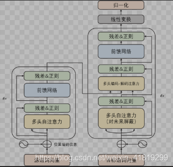 ? ? ? ?编解码注意力层,为解码器独有,接收上一层输出的Q和编码器输出的K、V