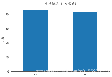 plt.title(u"离婚情况 (1为离婚)") # puts a title on our graph