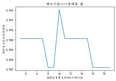 6特征模型的准确率和f1-score到达0.98,和之前用全部特征进行训练的模型效果相差无几,大大降低了训练模型的数据维数,也就是说减少了这个模型在实际应用过程中的被调查者所需填写的问题个数,从原来的54个问题降低到了6个或10个问题,这便于模型的实际应用。