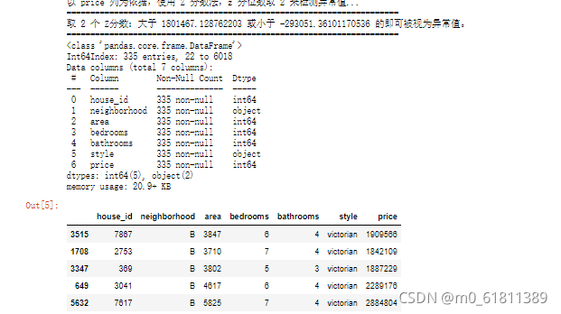 print(f'以 {column} 列为依据,使用 Z 分数法,z 分位数取 {z} 来检测异常值...')