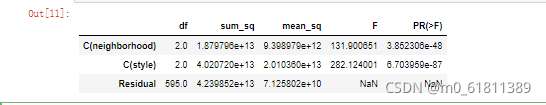 # mean_sq: msm, residual行的 mean_sq: mse