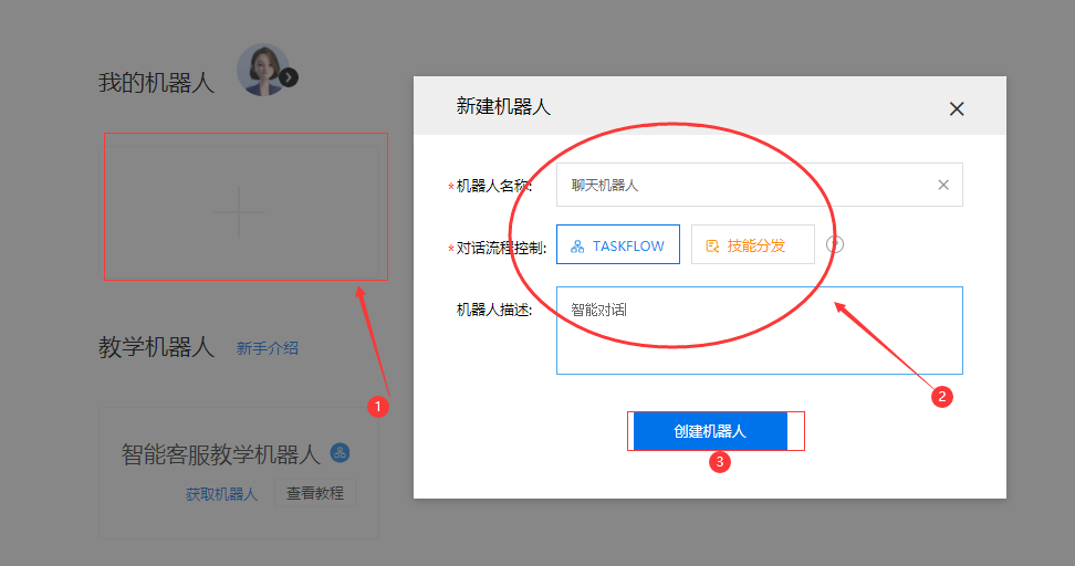 ?点击创建机器人,填写信息后创建