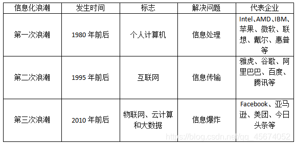 2010年前后,以云计算、大数据、物联网的普及为标志迎来了第三次信息化浪潮。谈到第三次信息化浪潮,我们就简单说一下前两次信息化浪潮。