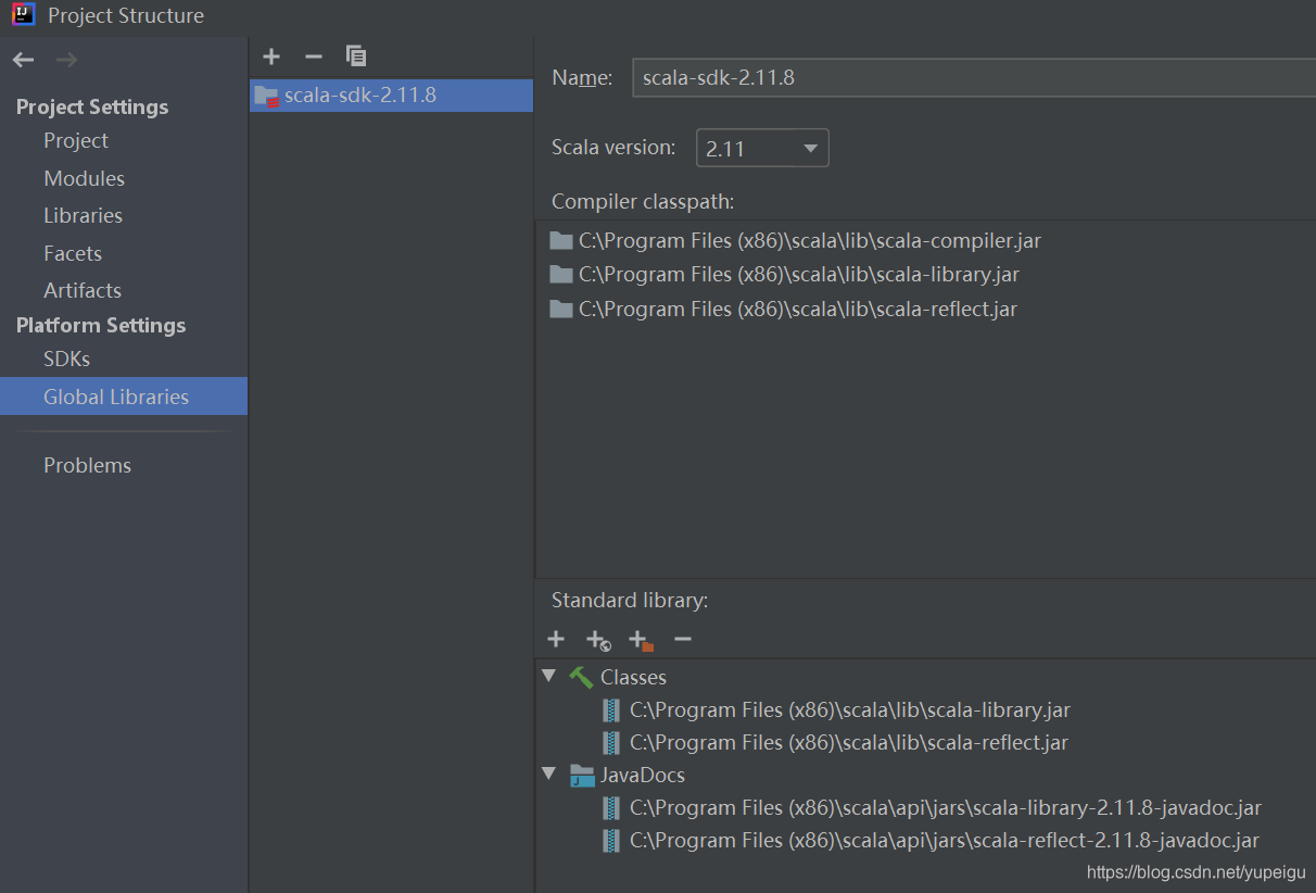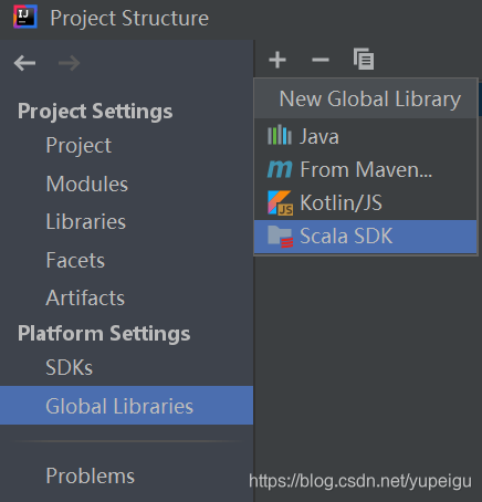 ?Global Libraries 点击 + 号,选择 Scala SDK: