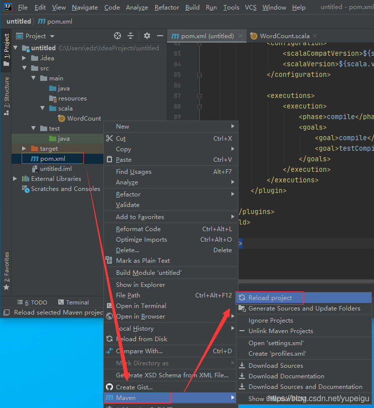 然后 右键项目中的 pom.xml 文件 -》Maven -》reload project 下载依赖包: