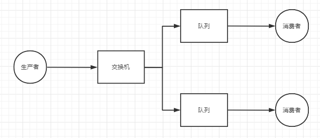 - 在发布/订阅队列模型中,生产者只能向交换机发送消息,交换机绑定了多个队列,