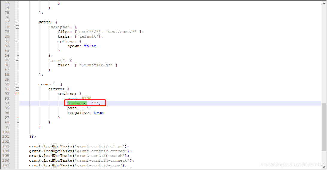5.到elasticsearch-head解压路径下,修改Gruntfile.js,在connect-server-options下添加hostname: "*"。