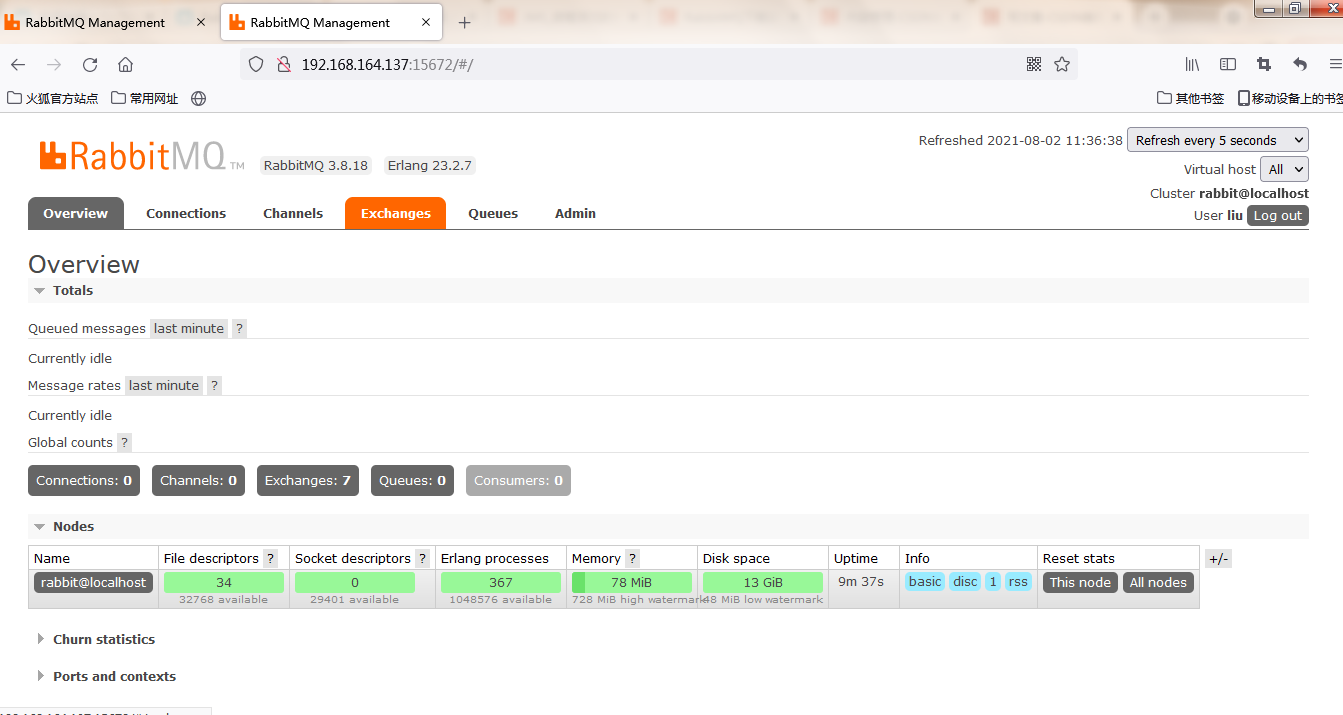 2.准备两个服务器分别安装RabbitMQ RabbitMQ下载安装 保证两个RabbitMQ成功安装   3.将两个服务器.erlang.cookie保持一直 查看192.168.164.134的.erlang.cookie,将内容复制
