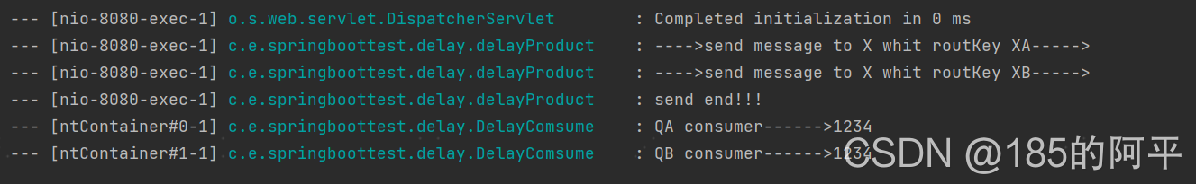 ?效果,当存在QAQB监听时,死信队列没有消费。如果去掉QAQB监听,则会在延迟时间之后进行消费