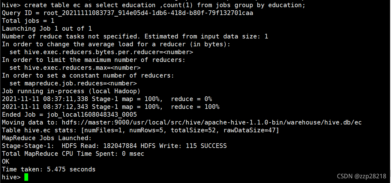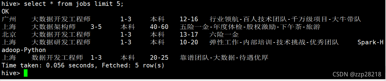 ?发现一直有上述的错误提示。但是我执行语句:select * from jobs limit 5; 他就没有报错,我仔细查看了一下我的hivesql语句也没有问题。