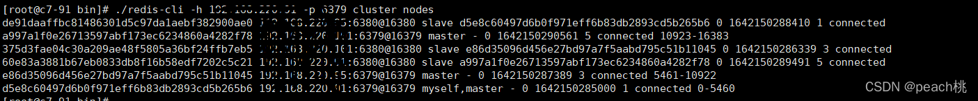 ./bin/redis-cli -h ip -p 16379 cluster nodes