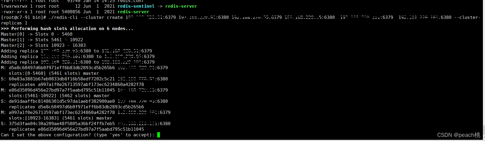 ./redis-cli --cluster create ip:16379? ip:16380? ip:16379? ip:16380? ip:16379? ip:16380 --cluster-replicas 1