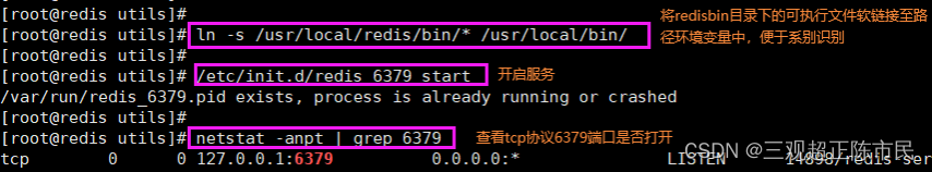 [root@localhost utils]# vim /etc/redis/6379.conf? bind 127.0.0.1 192.168.30.7 ?//添加监听IP port 6379 ? ? ? ? ? ? ? ? ? ?//默认监听端口 ? daemonize yes ? ? ? ? ? ? ? ?//开启守护进程 pidfile /var/run/redis_6379.pid ?//指定PID文件 loglevel notice ? ? ? ? ? ? ? ? ?//指定日志级别 logfile /var/log/redis_6379.log ?//指定日志文件 重启服务器