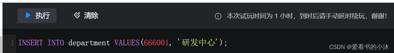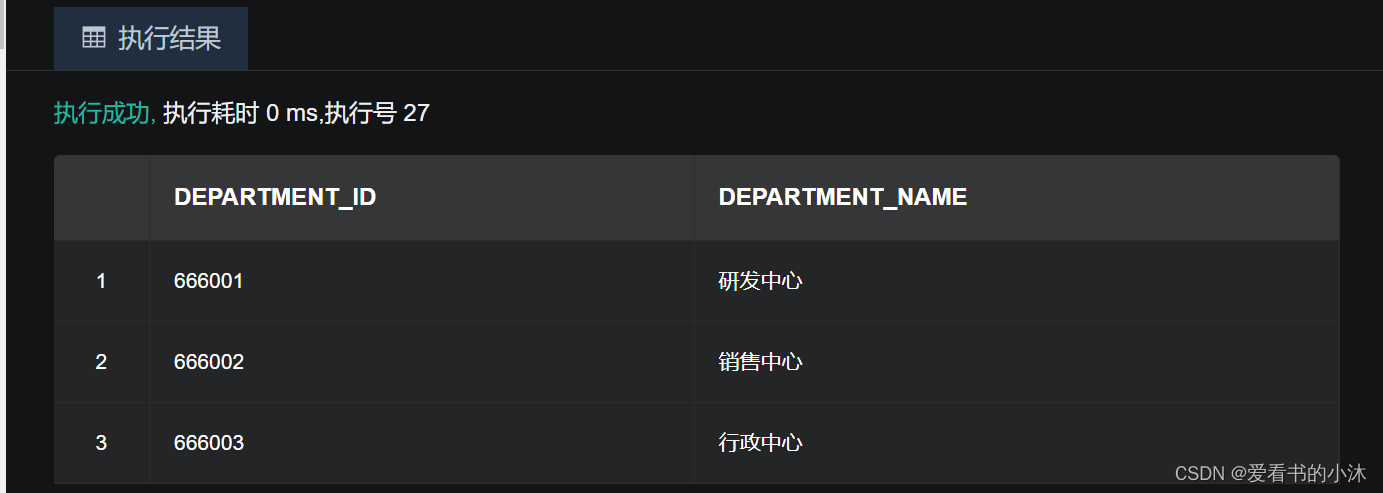 因为 employee 员工表和 department 部门表存在主外键约束,所以此示例中须按顺序执行插入语句,即先在 department 表中插入数据。