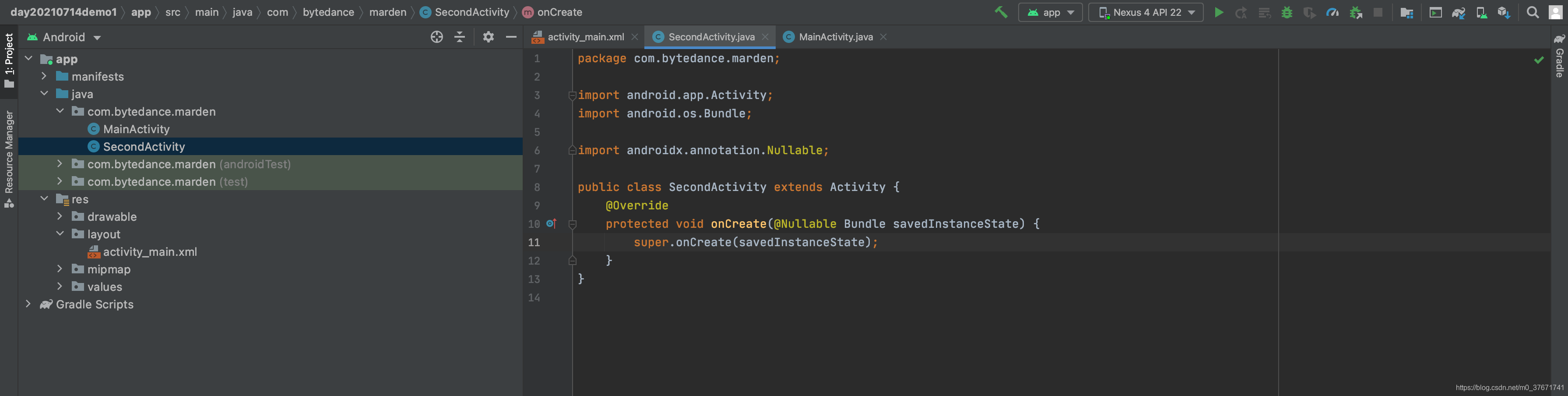 第一步:创建一个Android项目, 当前项目中只包含一个Activity(MainActivity)