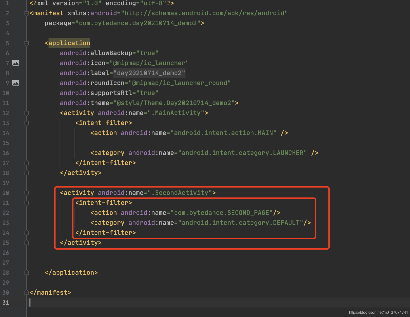 <action android:name="com.bytedance.SECOND_PAGE"/>