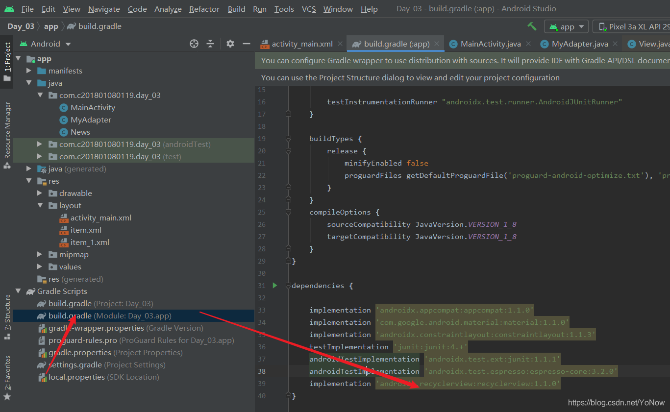 implementation 'androidx.recyclerview:recyclerview:1.1.0'