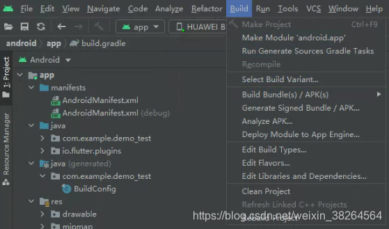 注意:如果Generate Signed Bundle/APK为灰色/找不到,应该是项目的Gradle build出了问题/找的位置不对。此时最简单的方法是,请新建一个Flutter项目,然后File > Open
