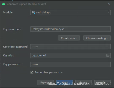 选择Create new,设置新的jks文件(我已设置过):