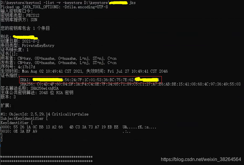 此时会提示需要密码,就是上一步的key store password,会得到如下结果: