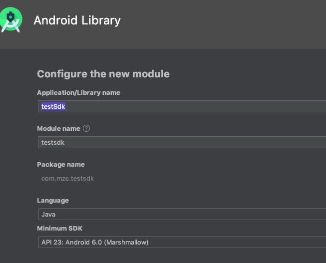 首先创建一个sdk模块,在androidstudio中,使用 File->new ->new Module-> Android Library 创建一个模块。定义一个包名,这个包名不是app的包名,只是sdk的包名,后期会使用此包名作为入口进行调用。