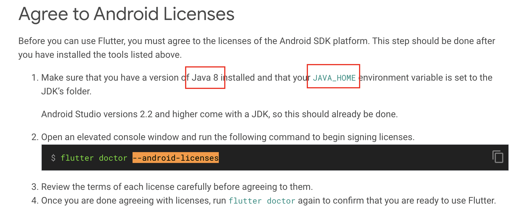 当然先是卸载了之前的jdk。安装之后,看到了flutter添加安卓licenses的官方文档,