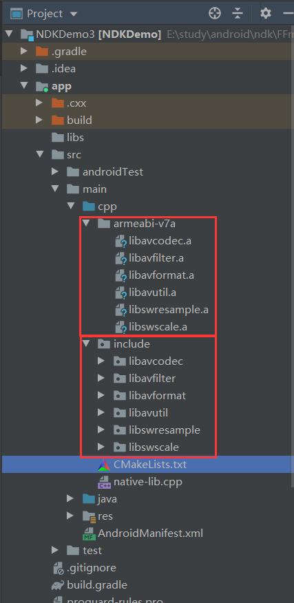 该项目通过Linux系统编译FFmpeg,并集成到Android Studio项目中。