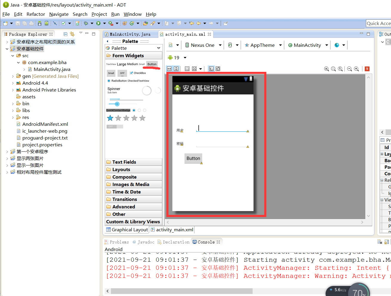 当实现用户框时,可以利用复制粘贴的方式实现密码框;拖拽Button按键到界面中,就可以实现Button按键。