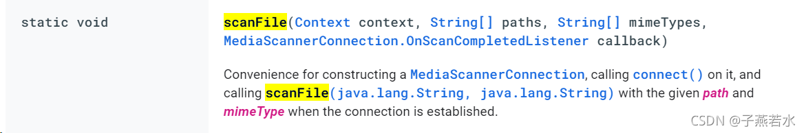 ?里面的关键类MediaScannerConnection 解释: