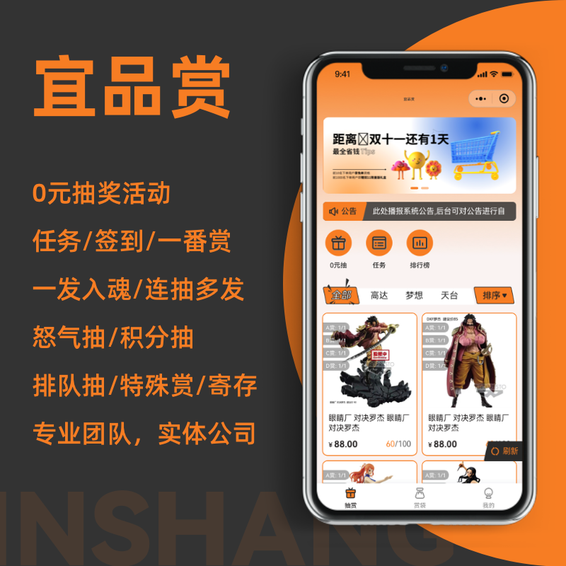 “一番赏”抽赏: 灵驰科技设计的“一番赏”抽赏功能比较人性化,玩家可以自由选择抽赏箱子,不是系统随机帮你选,拥有更大的自主性,箱子不同,每个箱子奖品都不一样,玩家自由切换想要购买的箱子,每个人都可以成为欧皇。玩家一次能抽多个箱子,抽一发、抽五发、抽十发,承包全套。系统自带锁定功能,多抽会锁定箱子,一分钟内其他玩家不能选择这些箱子抽赏,这样就可以极大的满足玩家的占有欲,一直抽一直爽。
