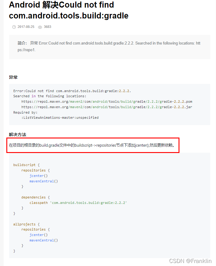 Android 解决Could not find com.android.tools.build:gradle-阿里云开发者社区 (aliyun.com)