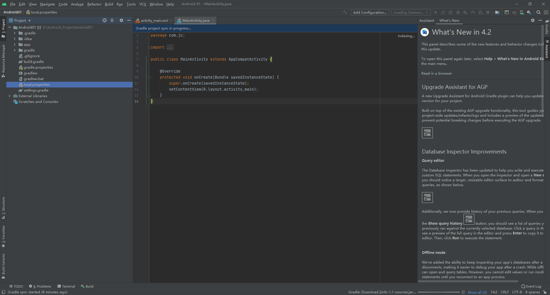 - 选择项目模板,默认【Empty Activity】→【Next】
