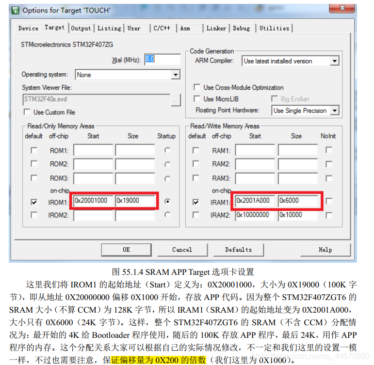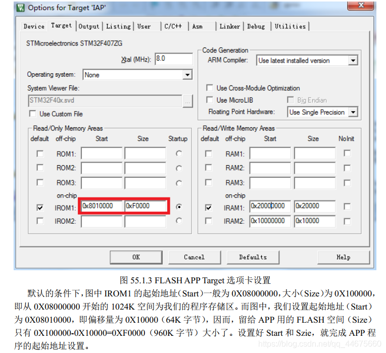 3)IAP程序中app程序写入到flsah的偏移地址=app程序在中断向量表的偏移地址=app程序中【魔法棒】设置的内存起始地址;
