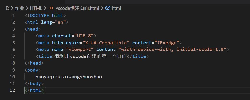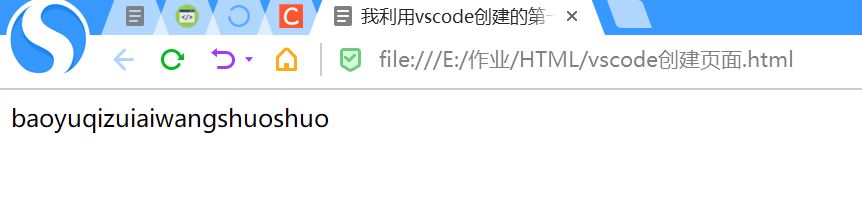 ????????VScode的使用: ?? ??? ?(1)新建文件(Ctrl+N) ?? ??? ?(2)保存(Ctrl+S)注意保存为.html文件 ?? ??? ?(3)生成页面骨架结构:输入英文!按下Tab键或者选择第一个一个!的选项 ?? ??? ?(4)利用插件在浏览器中预览页面:单机鼠标右键,在弹出的窗口点击“Open In Default Browser”(利用默认浏览器打开html文件)