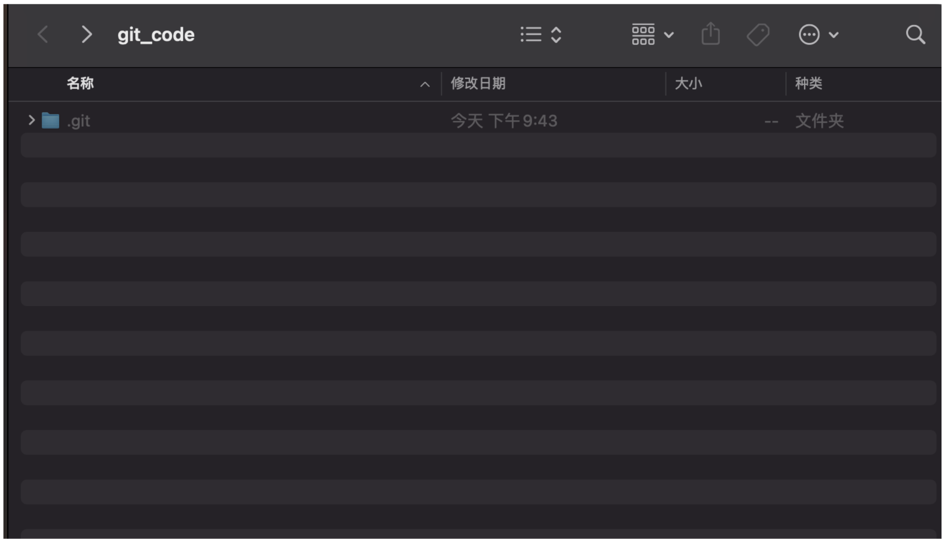 2、执行后可以看到,仅仅在项目中多出了一个.git目录,关于版本等的所有信息都在这个目录里面