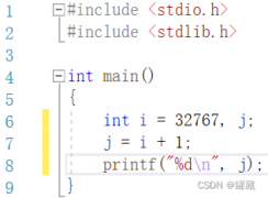 例:将 short 类型的 i=32767 加 1,得到 -32768。   32767 转换为二进制表示为 0111 1111 1111 1111,加 1 后得到 1000 0000 0000 0000,最高位为符号位,表示 -32768。 -32768 的原码与补码相同。 注:有符号类型输出时用%d(十进制)、%o(八进制)、%x(十六进制),无符号类型输出时用%u,具体如下: