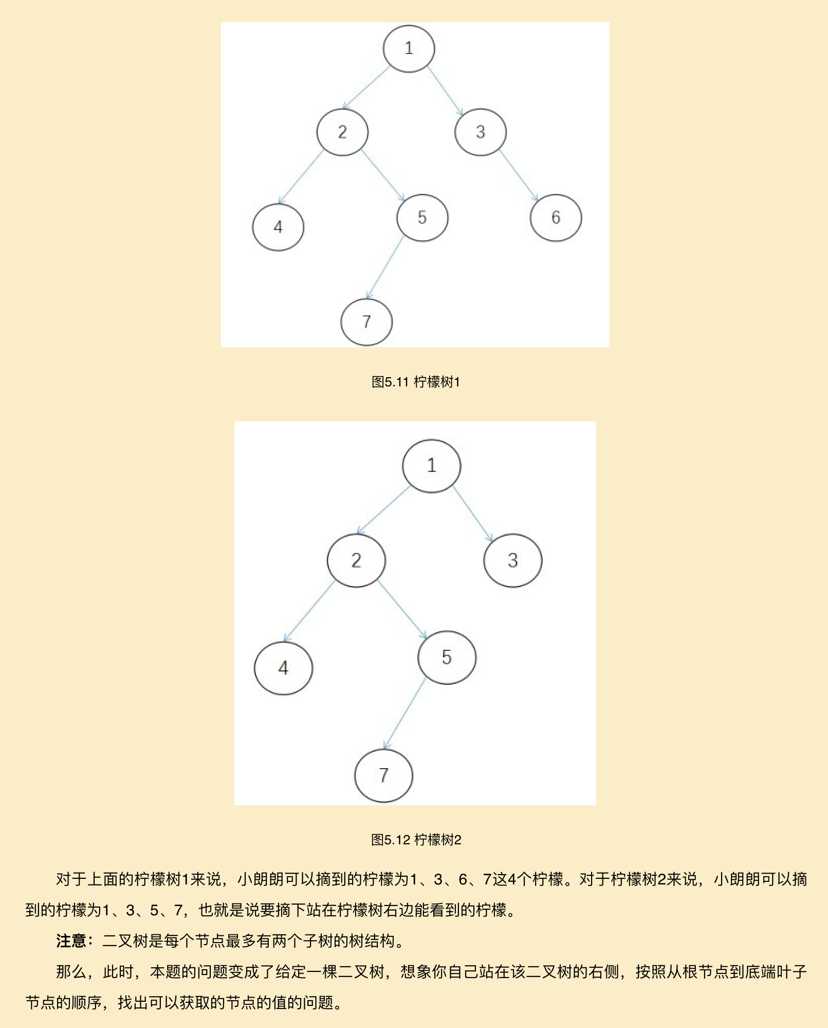 4.给定一个二叉树,想想你自己站在该二叉树的右侧,去采摘最外层树上的柠檬