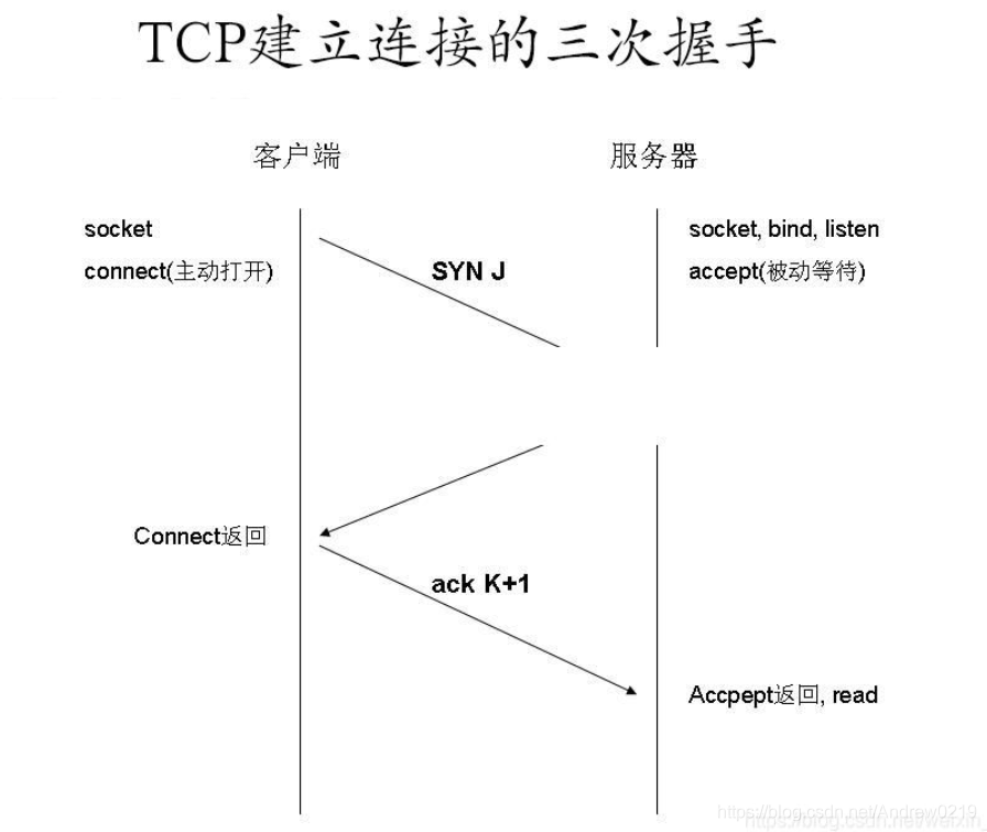 第一次握手.客户端发送位码为syn=1,随机产生seq number=1234567的数据包到服务器,服务器由SYN=1知道客户端要求建立联机(客户端:我要连接你) 第二次握手.服务器收到请求后要确认联机信息,向A发送ack number=(客户端的seq+1),syn=1,ack=1,随机产生seq=7654321的包(服务器:好的,你来连吧) 第三次握手.客户端收到后检查ack number是否正确,即第一次发送的seq number+1,以及位码ack是否为1,若正确,客户端会再发送ack number=(服务器的seq+1),ack=1,服务器收到后确认seq值与ack=1则连接建立成功。(客户端:好的,我来了)