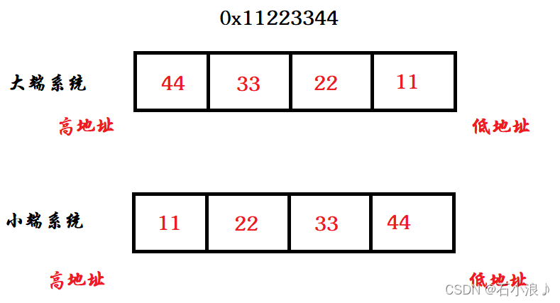 //0x11223344 小端系统 大端系统