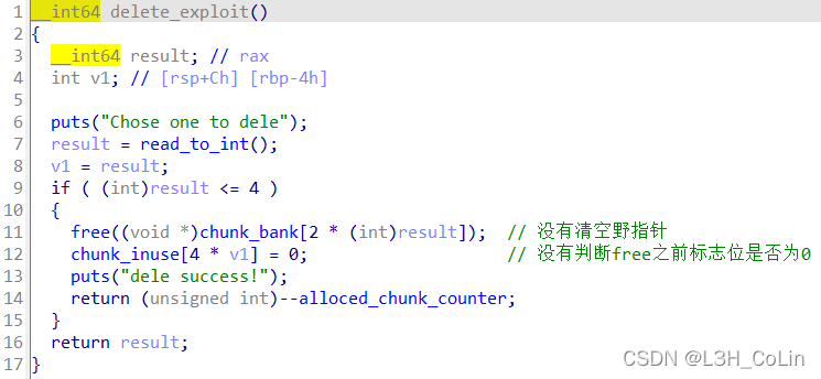 - 在delete_exploit函数中的double free漏洞,释放后没有清空指针