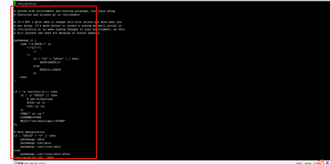 ?6、运行(命令:vi etc/profile)进入文件点击你的键盘(a或者i)进入编辑模式,把上面复制的东西粘贴到你这个文件的末尾,谨记!!!不能有空格和其他的东西 ? ?#set java environment