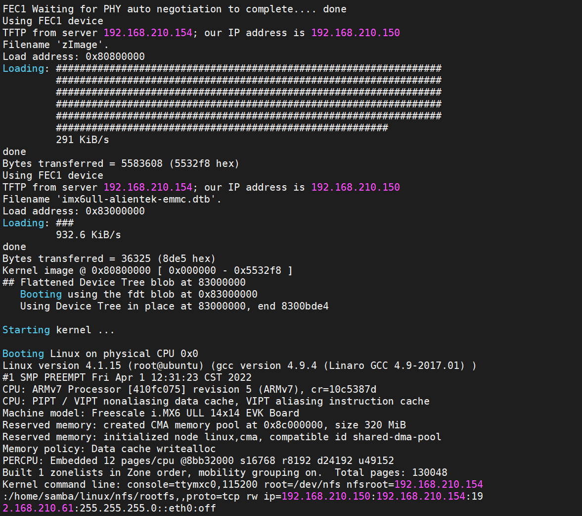 系统篇完结,移植好系统,搭建好nfs tftp环境,并测试通过。