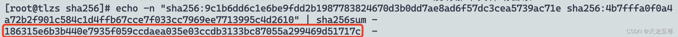 echo -n "sha256:9c1b6dd6c1e6be9fdd2b1987783824670d3b0dd7ae8ad6f57dc3cea5739ac71e sha256:4b7fffa0f0a4a72b2f901c584c1d4ffb67cce7f033cc7969ee7713995c4d2610" | sha256sum | awk '{print $1}'
